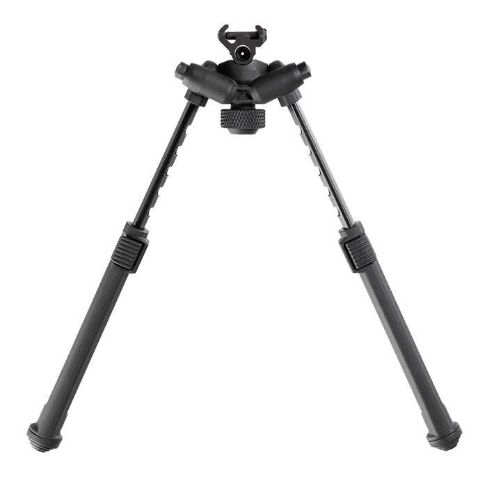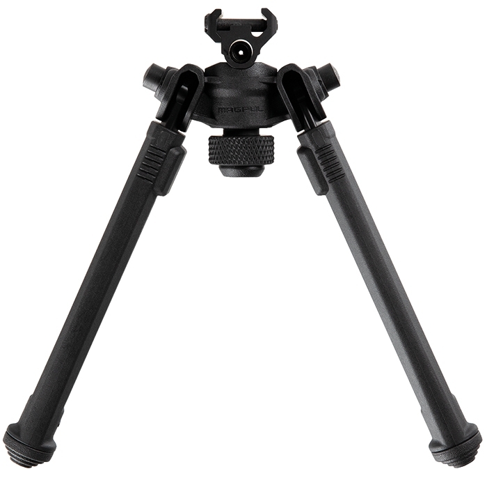The M1913 Picatinny Rail compatible Magpul bipod offers unsurpassed value for money. It is constructed of lightweight Mil-Spec hard anodized 6061 T-6 aluminum and injection molded polymer. It offers key features and brings innovation in ergonomics, functionality, robustness in an aesthetically pleasing low profile design. Deploying and adjusting the Magpul Bipod is quick and easy. Spring-loaded legs stow neatly forward and snap down to lock in place with one hand. Leg extensions slide and lock securely with the push of a button on one of seven detents. Leg length can be extended from 14 cm in increments of seven to 24 cm. When opened, the opening angle is 50°. The locking knobs are easy to operate even when wearing gloves. The Magpul bipod is designed to fit optimally under the barrel when folded without interfering. The anodized finish and tight, precise tolerances reduce squeaks and rattles and reflection. The rubber caps on the feet can be removed and replaced. Fits most Atlas model interchangeable bipod feet (except Atlas-5-H).