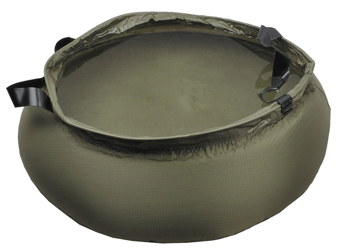 Practical folding bowl with 10 liters volume, small pack size and low weight.