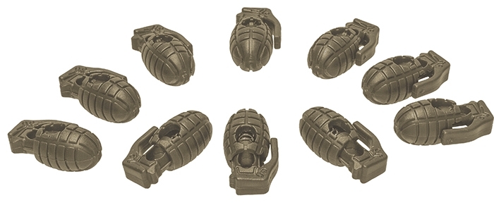 Universal Mil-Tec cord stopper made of plastic in the shape of a hand grenade.