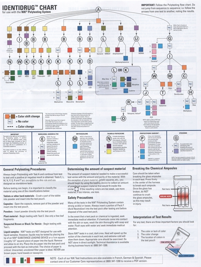 Basically, you always start with test A. The result of test A then leads to the next test or gives an indication of what kind of drug it is.