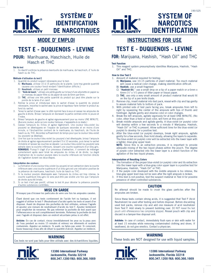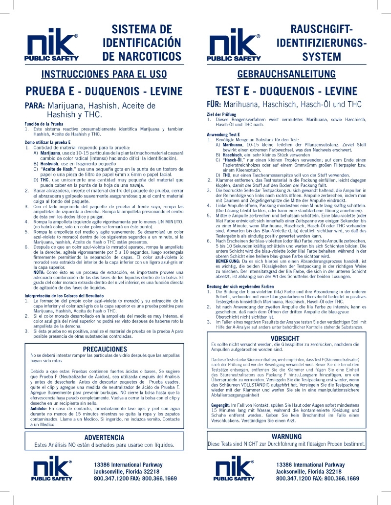 NIK® drug substance test for the identification of marijuana, hashish and hashish oil.