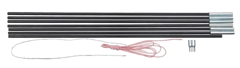 Spare pole for tents. Made of fiberglass with multiple segments. Complete with rubber cord and end tips.