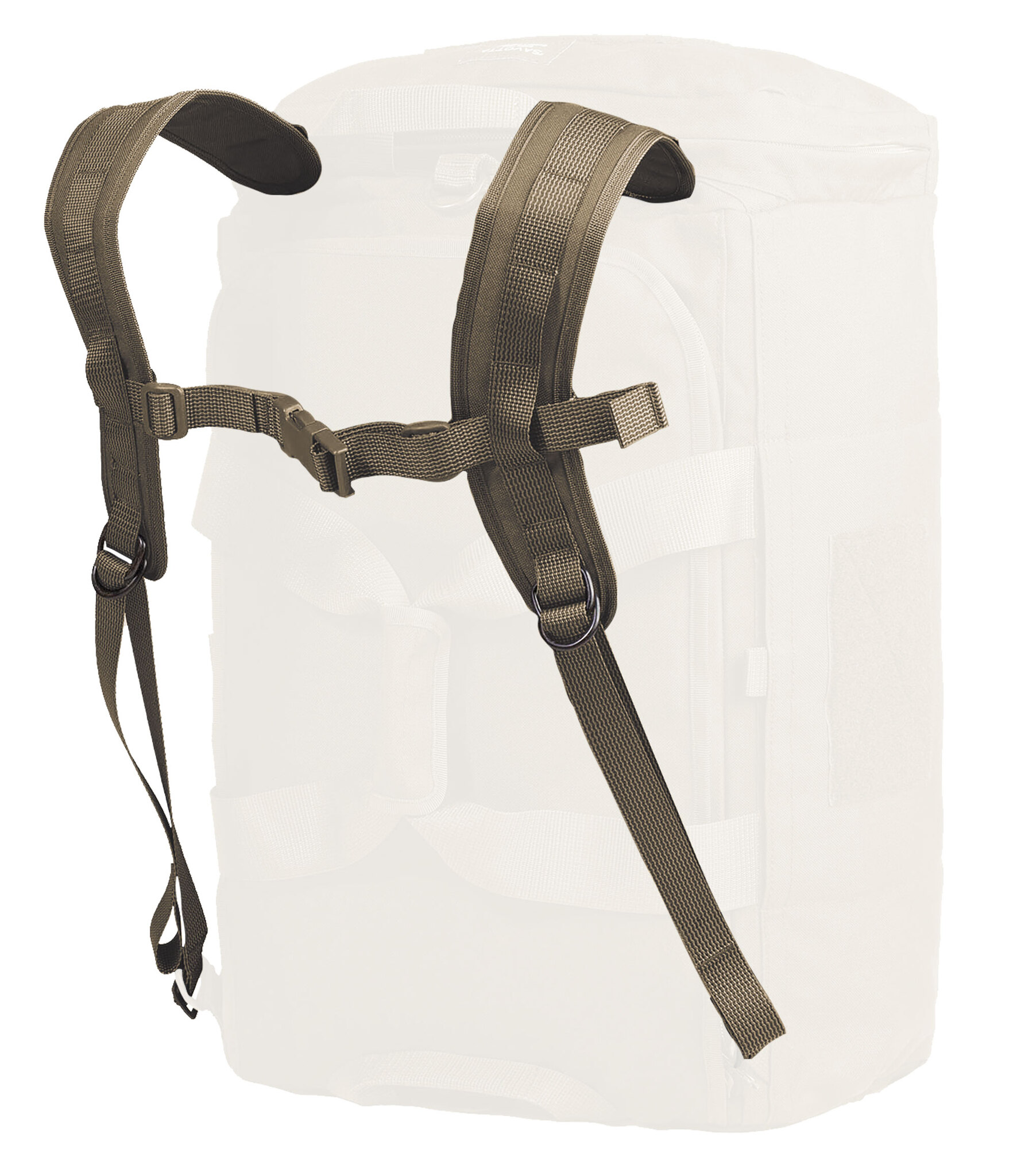 Shoulder strap system for the Keikka Duffelbag insert bags, so that they can be worn comfortably on the back. The set consists of two shoulder straps with ergonomically shaped shoulder pads and a chest strap.