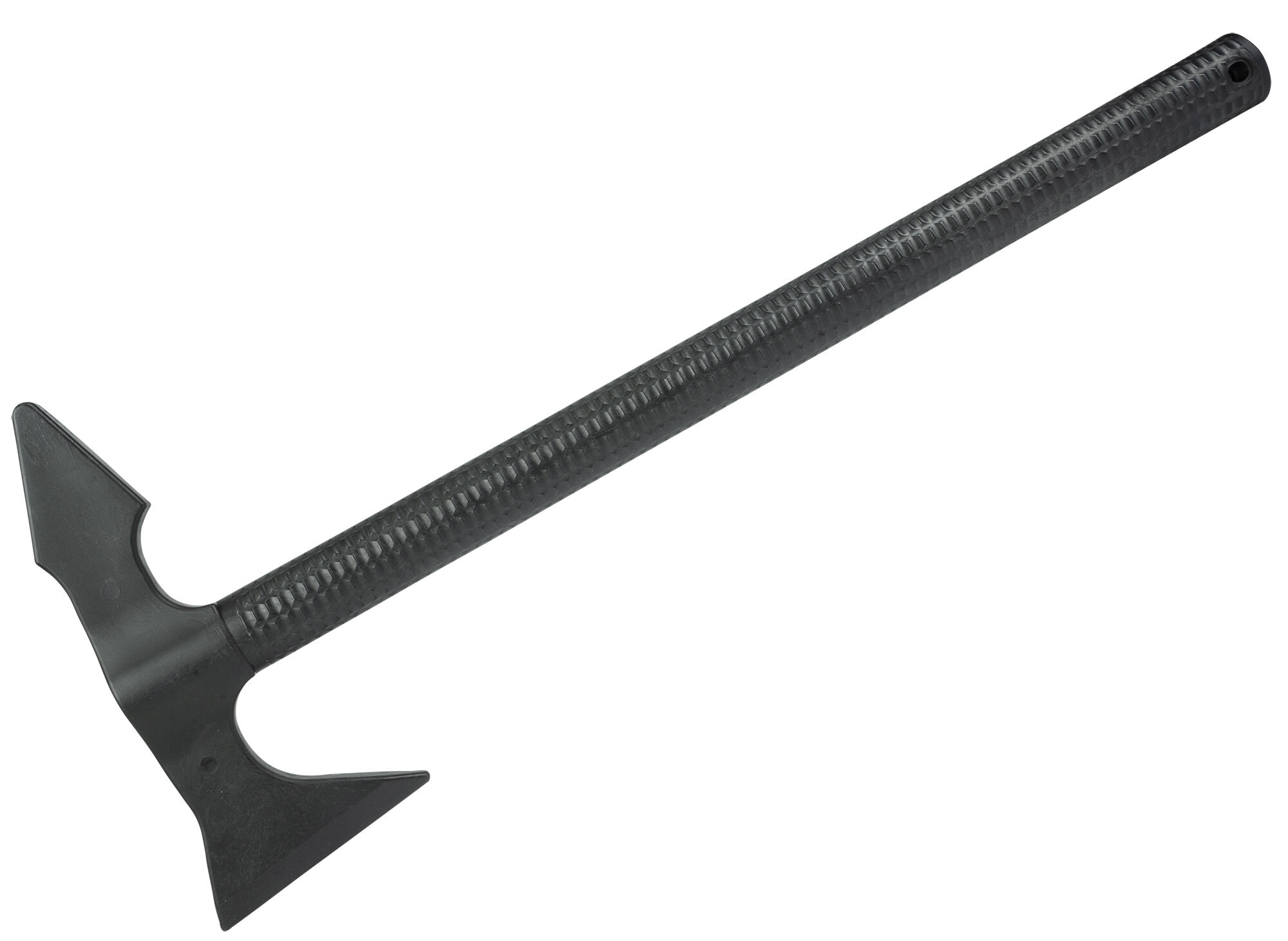 The hard plastic replica of a tomahawk is used for special self-defense training and execution of operational scenarios.