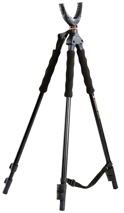 The Quest T62U from Vanguard is a tripod, bipod and target stick in one. Made from a sturdy aluminum alloy. The removable third leg can be used like a monopod. Soft foam handles and non-slip rubber feet provide stability. Removable U-shaped bracket with rubber blades rotates 360 ° , so you can shoot at any angle without repositioning the shooting stick. The rest can be removed if necessary and the target stick can be used as a tripod for cameras with 1/4" threads.