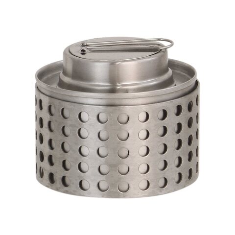 Stainless steel construction. Includes alcohol stove; stove regulator; lid; and stove ring. Holds approximately 4.5oz of fuel. Burn time is 20 minutes plus.
