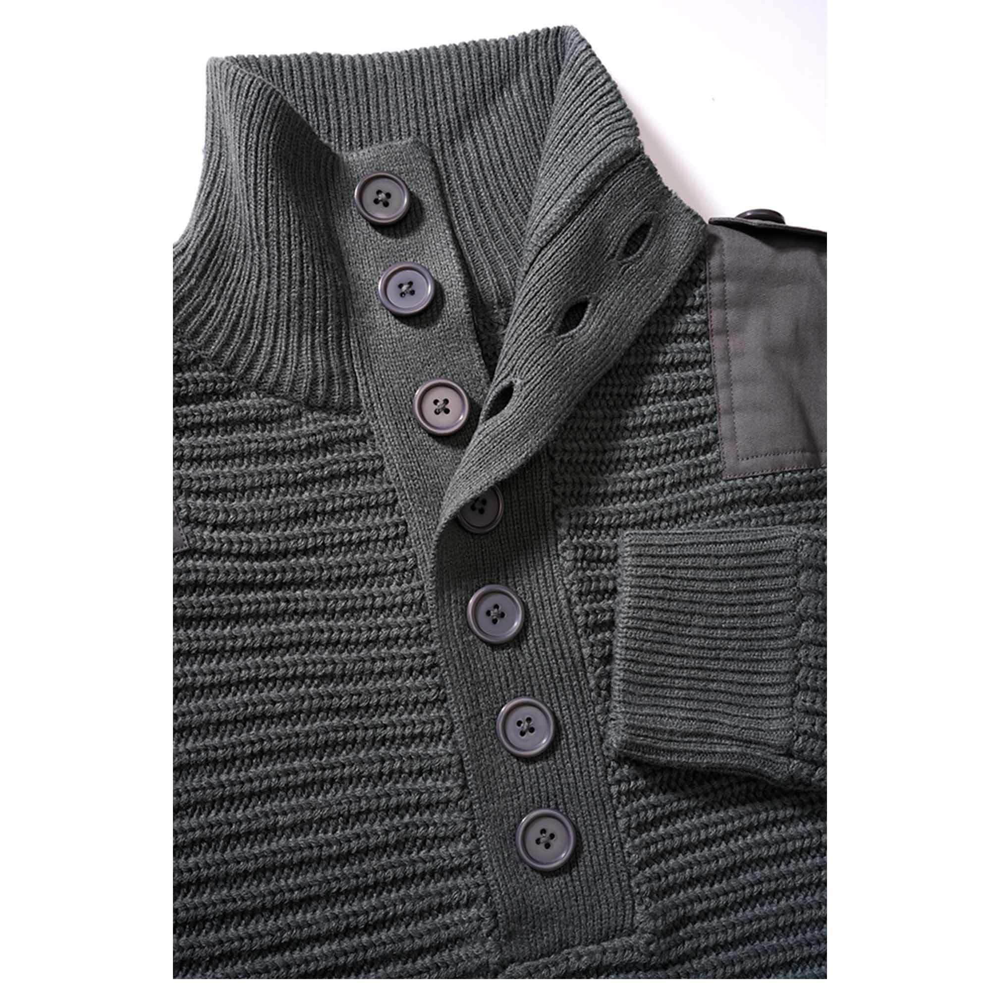 The Brandit Pullover Alpin is a coarse-knitted pullover modeled on the Austrian Alpin Army pullover. The material used ensures a soft, comfortable fit without scratching. The feel-good effect is enhanced by the wide knitted cuffs on the sleeves and hem as well as the high collar with button placket.