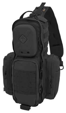 2017 version of the Hazard4® Rocket™ Slingbag from the evac™ series with an attached hard case and Lasercut MOLLE Velcro panels.
