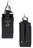 Flexible radio bag with elastic inserts on the sides to store radios of different sizes. The radio can be quickly removed by plug-in fastener.